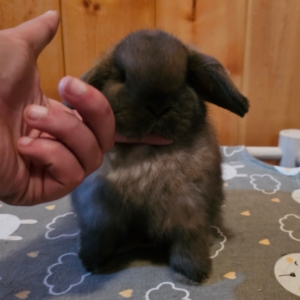 Maybelle is a big doe who has large litters and is a great mom. She is a false dwarf (normal), which means she will never have a peanut baby.